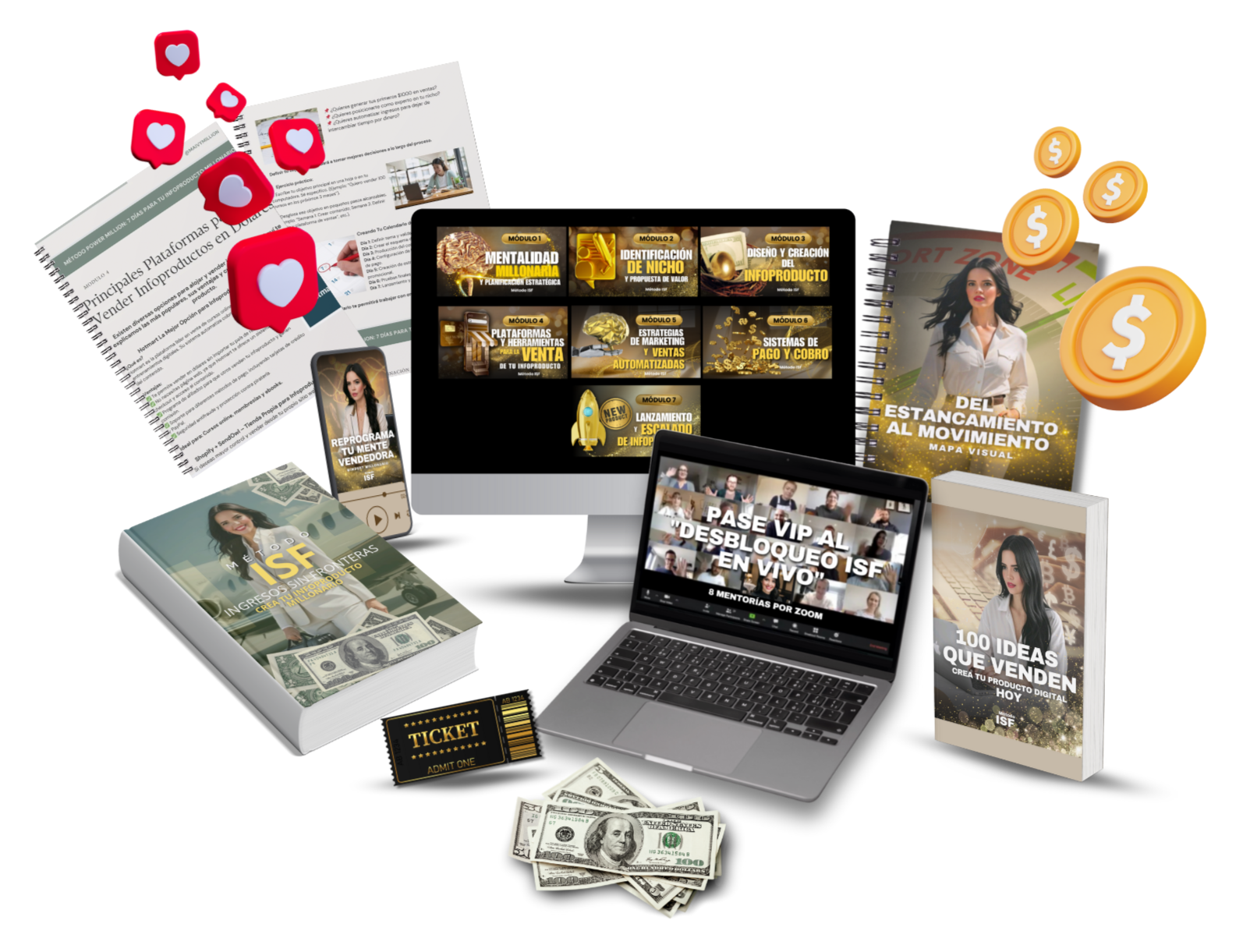 Es un sistema paso a paso que te enseña a crear, lanzar y vender tu primer producto digital sin complicaciones, sin necesidad de experiencia previa ni exposición constante.